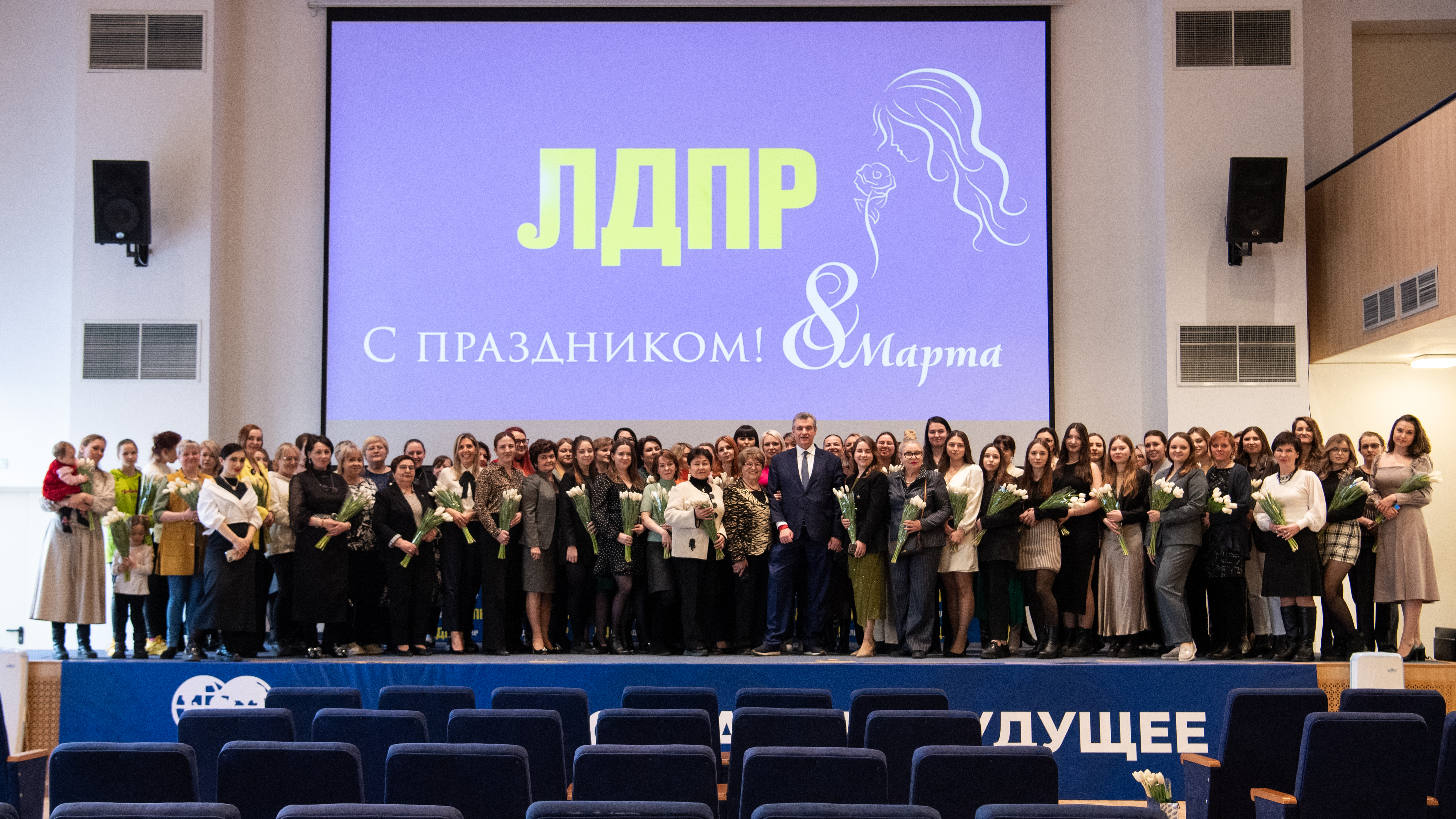 В актовом зале Центрального аппарата ЛДПР в этот день собрались женщины, которые отстаивают интересы партии, участвуют в политической жизни страны. Среди них мать семерых детей Нина Маликова, самый активный волонтёр фонда «Чудотворцы» Анастасия Салова, заслуженный врач России Шахиста Миркасымова. Кроме того, Председатель ЛДПР особо отметил сотрудниц, работающих в партии 20 и более лет.