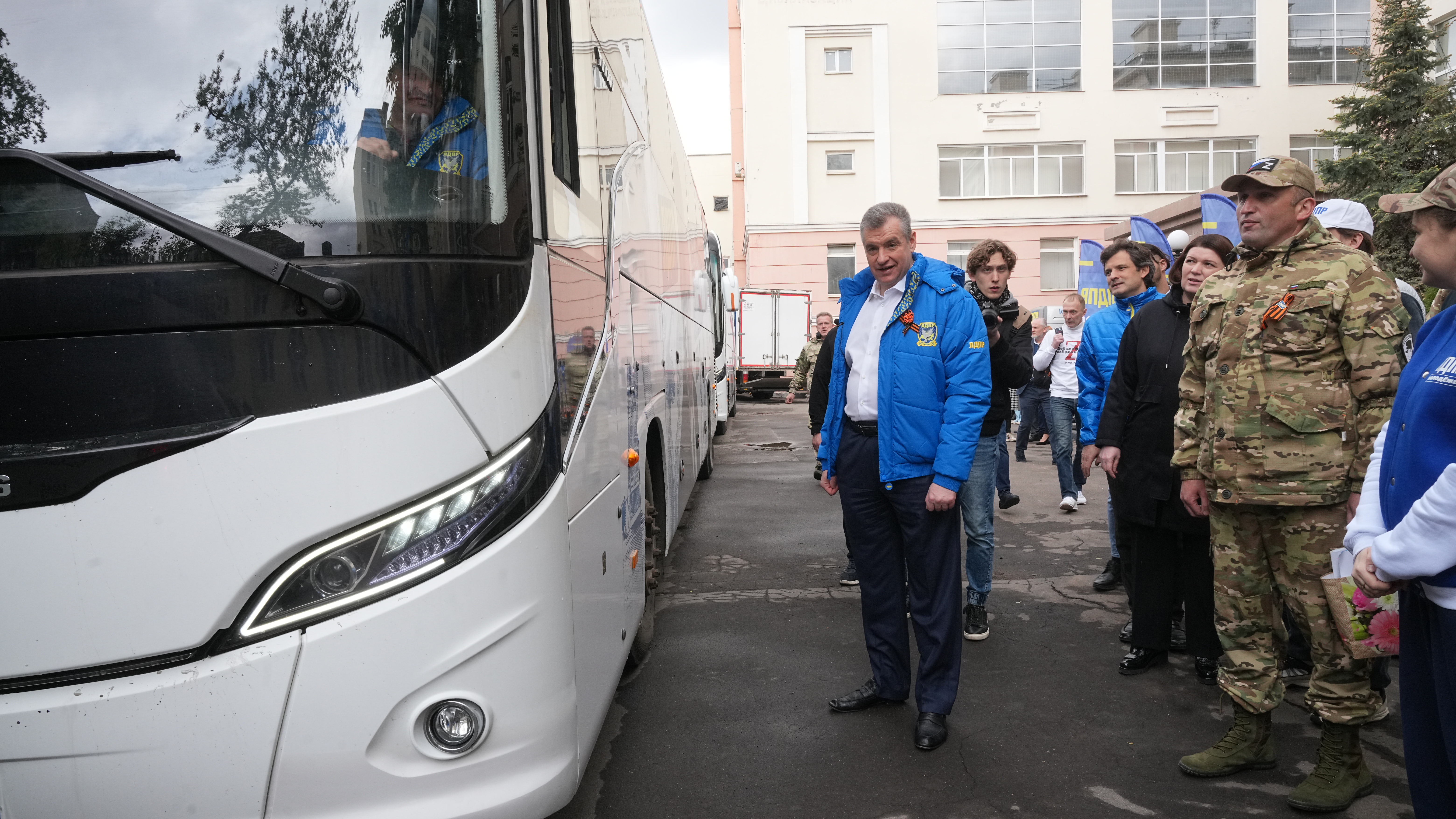 ЛДПР, сообщил Председатель партии Леонид Слуцкий, работает плечом к плечу с сотнями общественных организаций, неформальных объединений людей, готовых отдавать свое время ради нашей общей Победы. Сегодня к отправке каравана присоединились представители благотворительных фондов «Победа», «Единое сердце», «Везем всегда».
