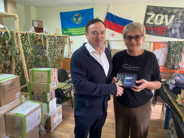 Олег Постников вручил медали «За помощь СВО», учрежденные ЛДПР в прошлом году. Победа на фронте куется в тылу, а руками таких хрупких женщин обеспечивается комфорт и защита наших солдат. Масксети, пятиточечники, маскхалаты, окопные свечи - всё это отправляют женщины-общественницы нашим бойцам в зону спецоперации.
