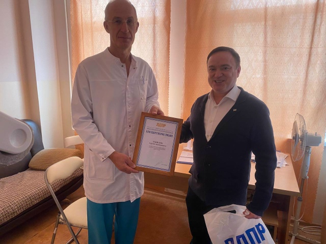 Отдельно Олег Постников встретился с врачом-травматологом Кошелевым Сергеем Анатольевичем, чтобы вручить благодарственное письмо врачу от Председателя ЛДПР Леонида Слуцкого. Сергей Анатольевич постоянно усовершенствует свои профессиональные навыки, в больнице под его началом делают операции по замене коленного сустава, а также тазобедренного сустава. Больница принимает пациентов из Губахи, Горнозаводска, Лысьвы, Гремячинска. Жители Чусового и других городов ценят Сергея Кошелева за его отзывчивость и открытость.