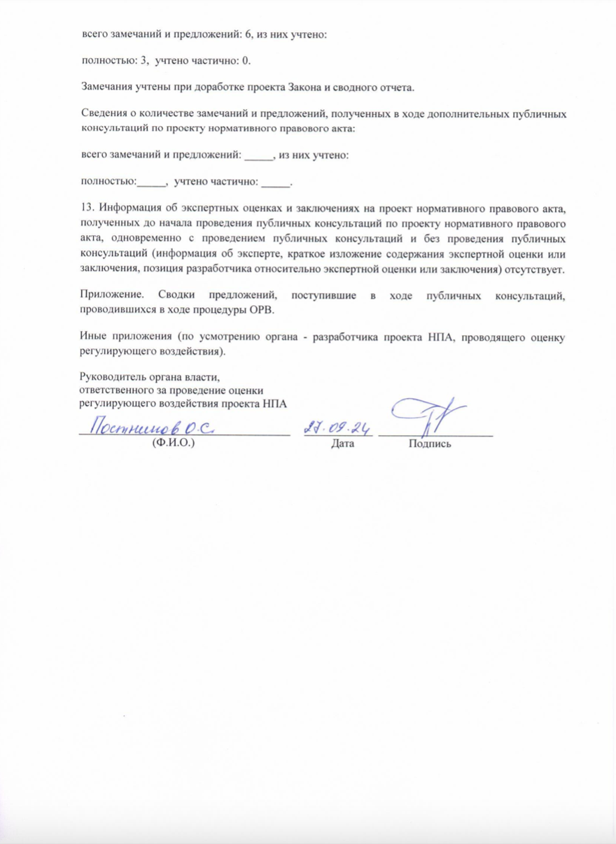 Дополнительные публичные консультации, по вопросу внесения указанных изменений будут проводиться в течении 5 рабочих дней начиная с 30.09.2024 по 04.10.2024.