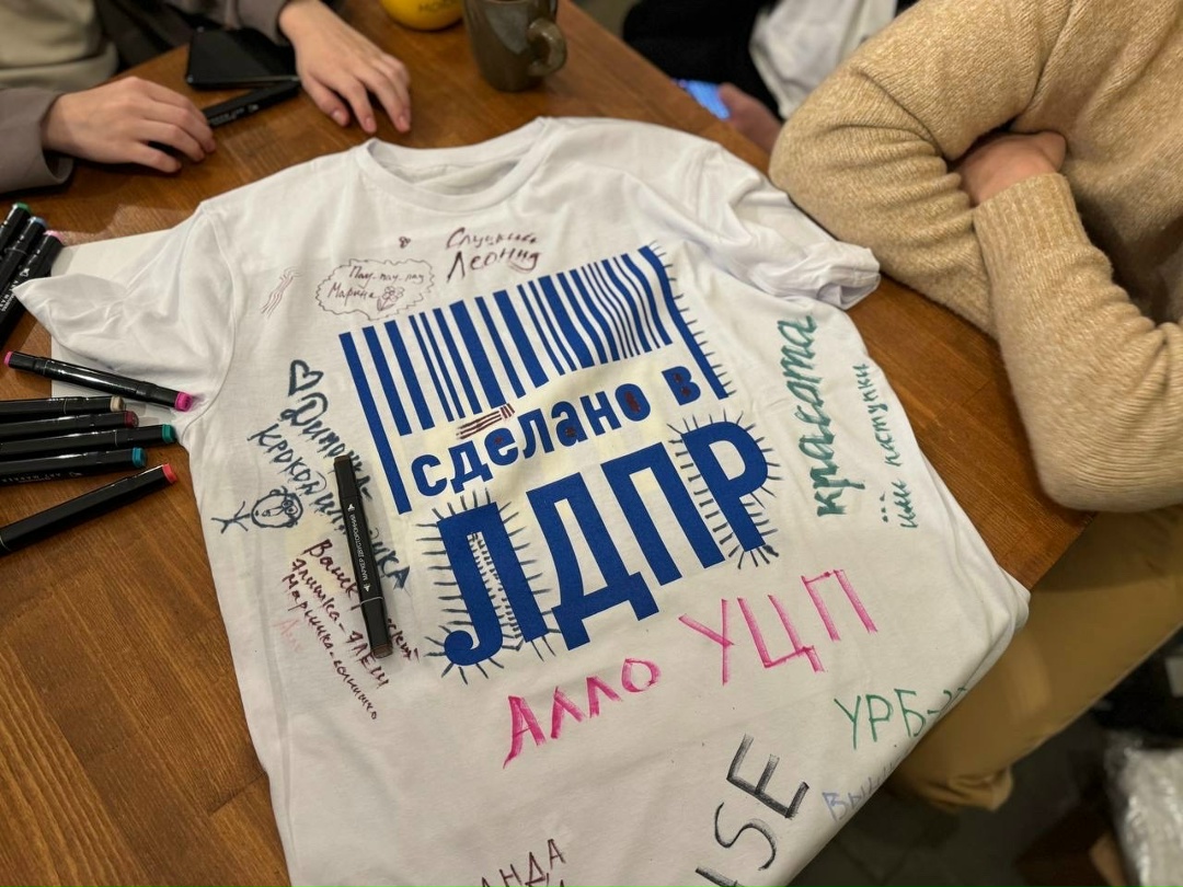 Ну а после умственных упражнений настало время для креатива - все желающие могли разрисовать футболки ЛДПР.