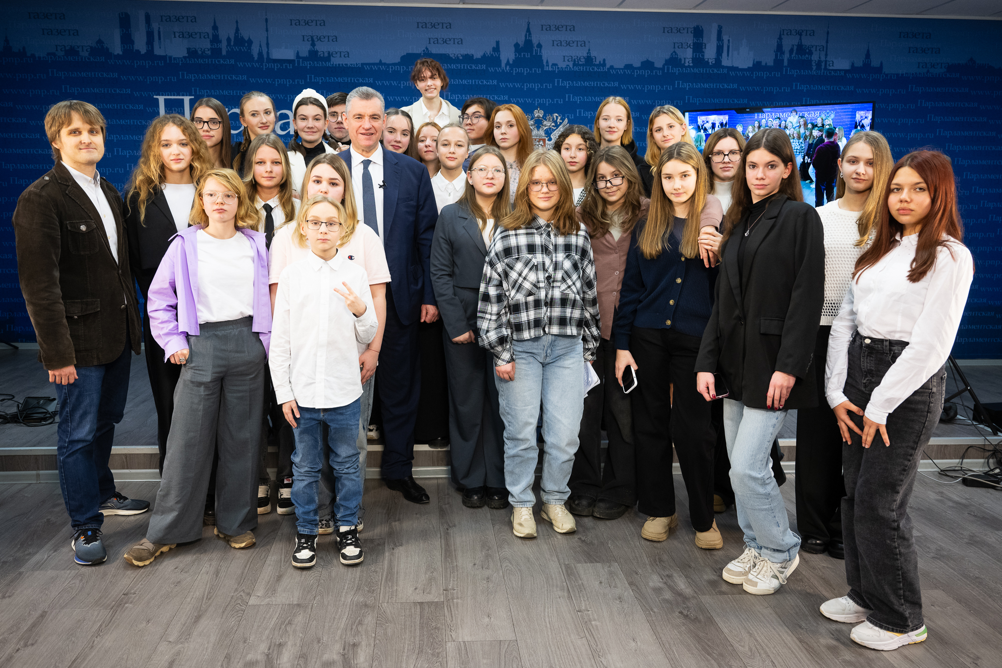 Председатель ЛДПР Леонид Слуцкий провёл пресс-конференцию для юных репортёров – слушателей Школы журналистики имени Владимира Мезенцева при Центральном доме журналиста, которая состоялась в Москве в пресс-центре «Парламентской газеты»