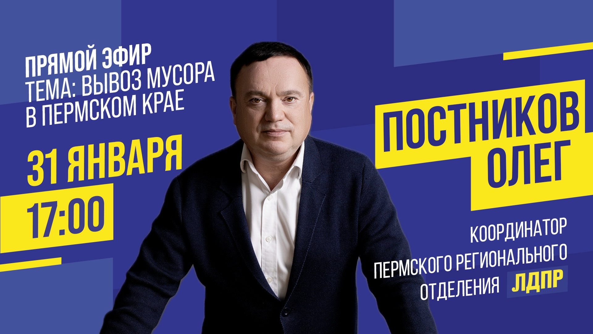 В эту пятницу, 31 января, Руководитель Фракции ЛДПР в Законодательном Собрании Пермского края Олег Постников будет на связи в прямом эфире