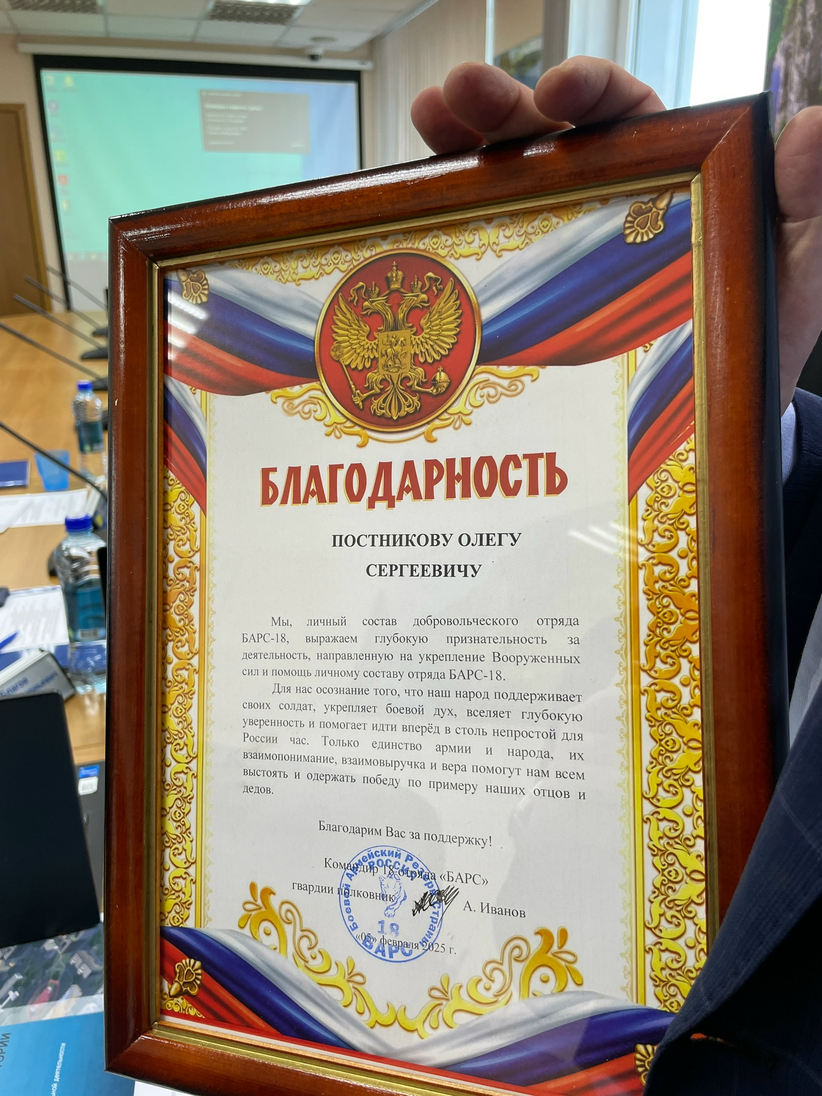 Бойцы добровольческого отряда БАРС -18 поблагодарили депутатов за регулярную помощь и отправку оборудования и необходимых средств для участия отряда в спецоперации.
