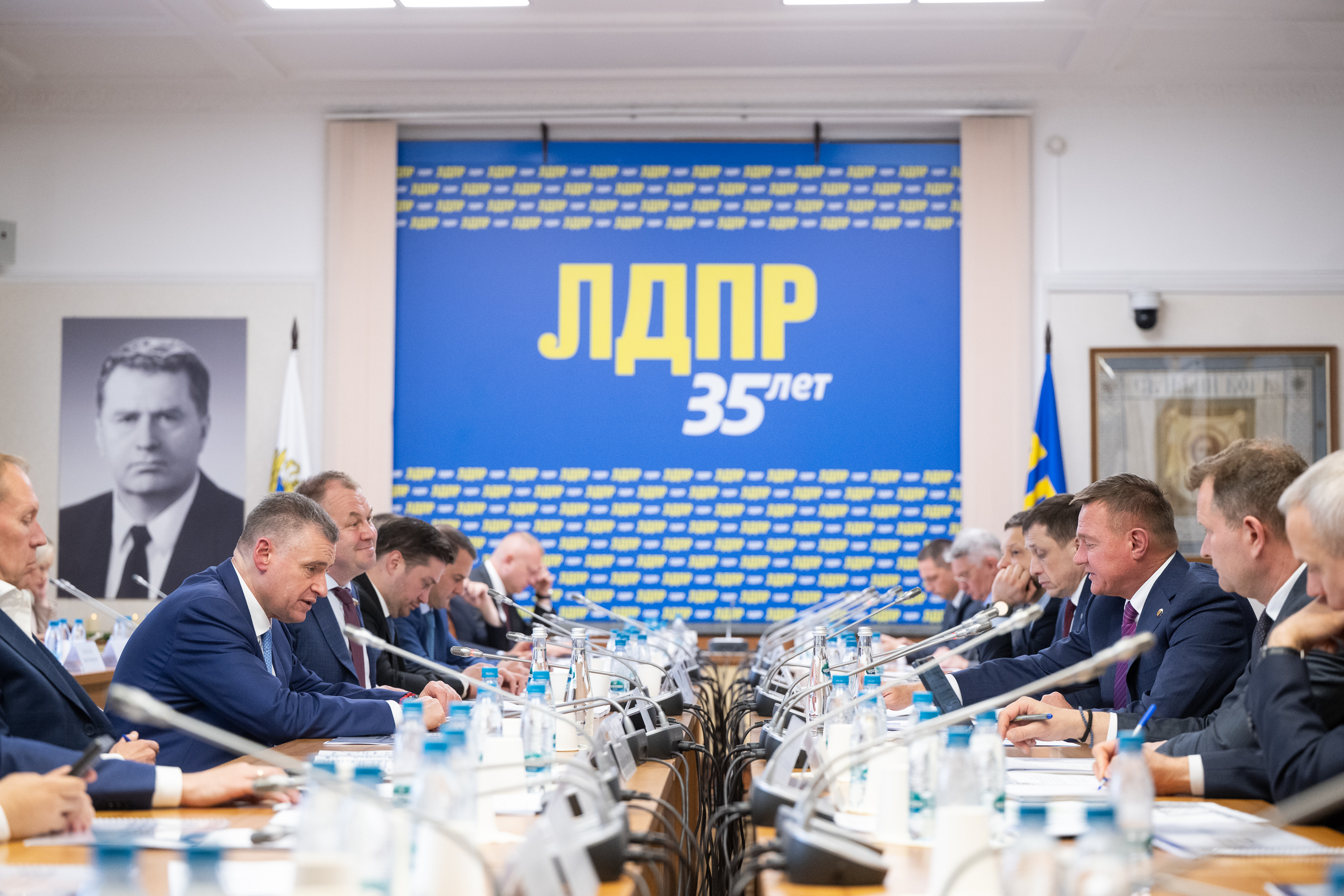 Депутаты фракции ЛДПР в Государственной Думе во главе с лидером Леонидом Слуцким обсудили с Министром транспорта РФ Романом Старовойтом состояние отечественных дорог, а также проблемы грузоперевозчиков