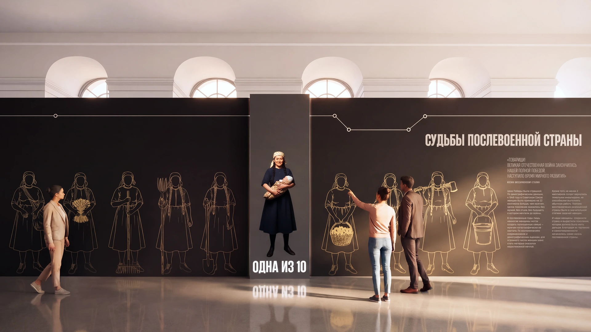 Маршрут выстроен хронологически и тематически, позволяя проследить путь от политического; становления до формирования образа будущего.